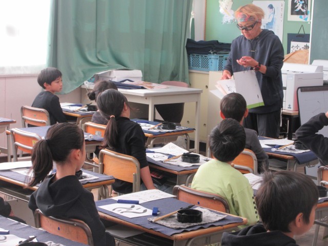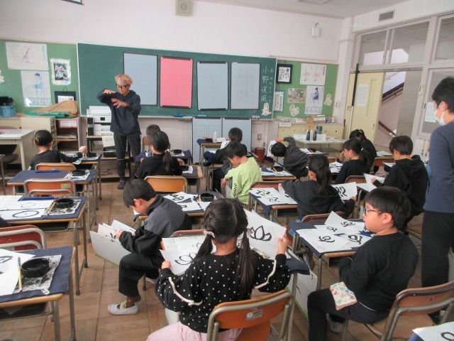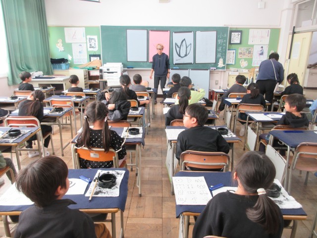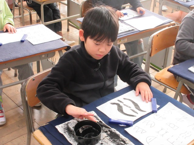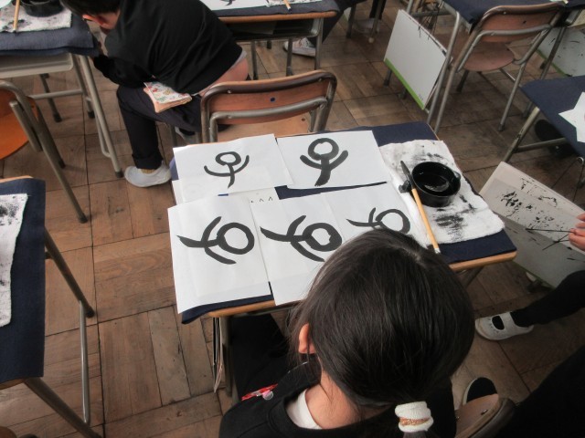 1年生の書作品づくりの様子です。選んだ象形文字を墨で練習しました。どの作品がお気に入りか自分で選んでいましたね。次は清書になります。楽しく作品作りをしましょう。