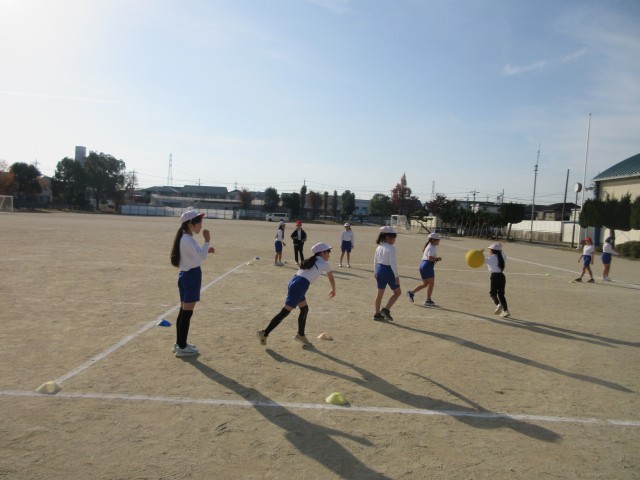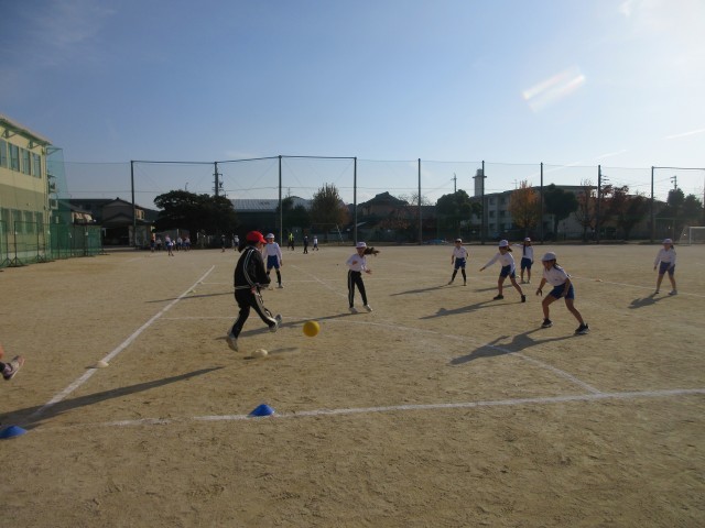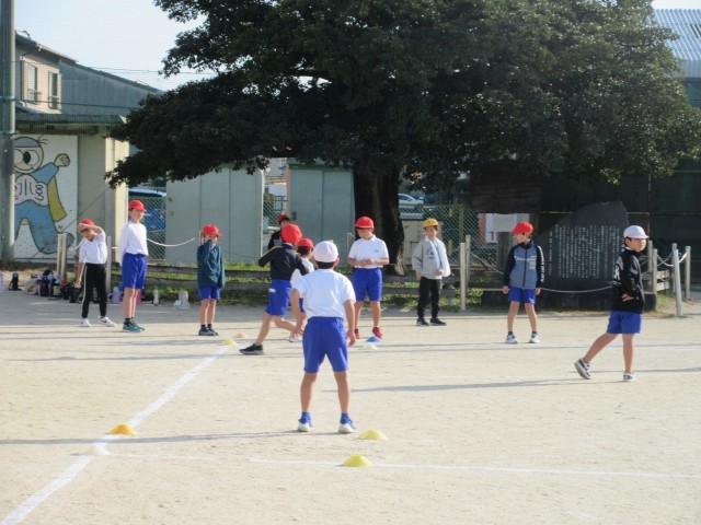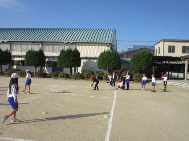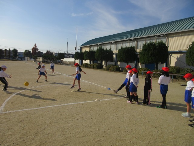 3年生の授業の様子です。運動場ではキックベースに取り組んでいます。ゲームも上手に進められるようになってきました。仲間を応援する声も大きいですね。