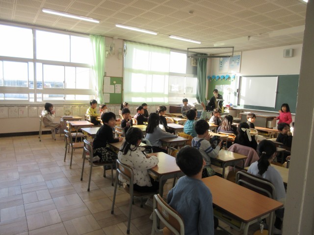 1年生の朝の会の一コマです。日直さんの進行で進められていましたね。健康観察では一人一人先生から名前を呼ばれると「ハイ、元気です」「ちょっとせきがでます」と自分の体調のことを説明できていました。どんどんできることが増えていますね。
