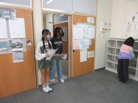外そうじの一コマです。今、たくさんの落ち葉があります。みんなで協力して落ち葉を集めています。いつも集めているビニール袋はすぐにいっぱいになってしまうので、大きなふくろを持ってそうじをしています。みなさん、ありがとうございます。