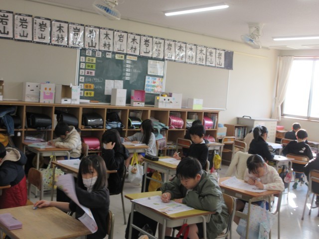 4年生の授業の様子です。いろいろなクラスがテストに取り組んでいました。みんなとても集中していました。今までの学習の成果が出るといいですね。