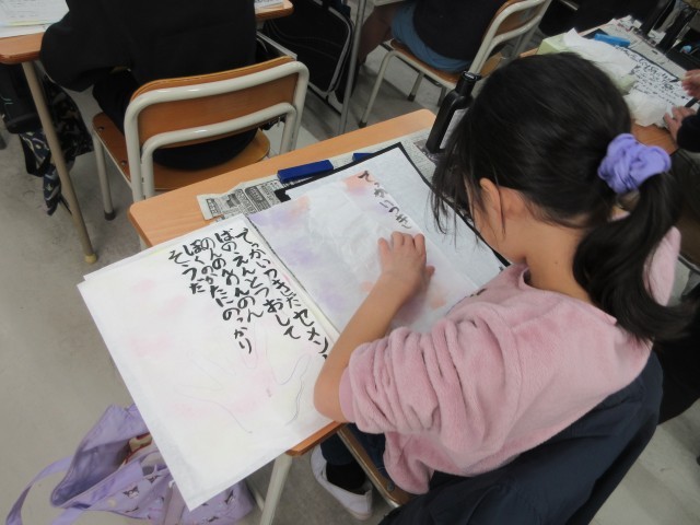 書作品作り 4年生 2