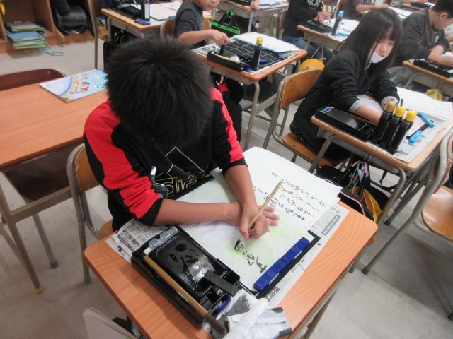 引き続き、4年生の書作品作りの様子です。