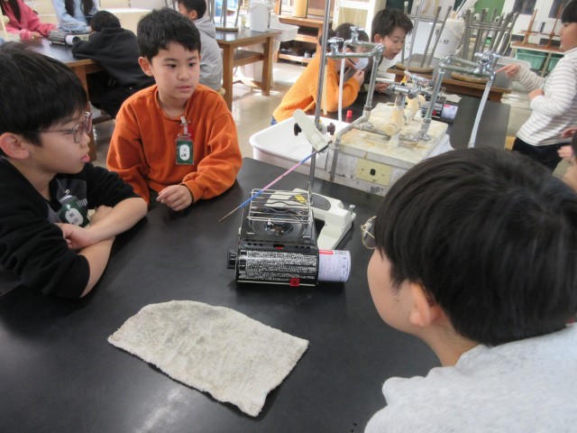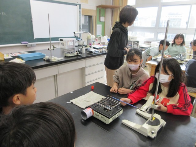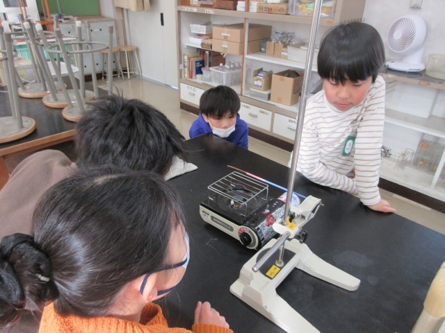 準備が整い、いよいよ実験開始です。金属はどのように温められるかな?色の変化に注目です。