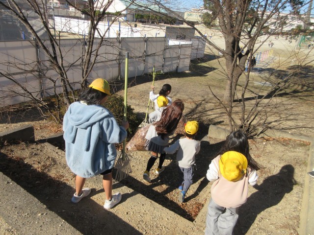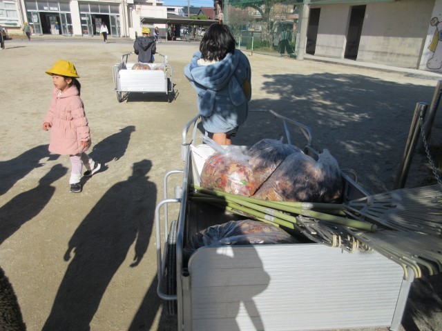 小野の山の落ち葉拾いの様子です。たくさんの落ち葉をみんなでリヤカーまで運びました。みなさん、落ち葉拾いありがとうございます。