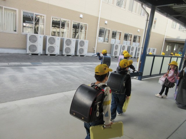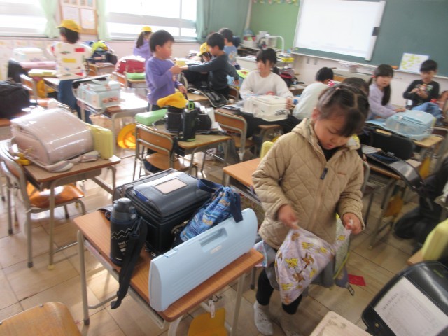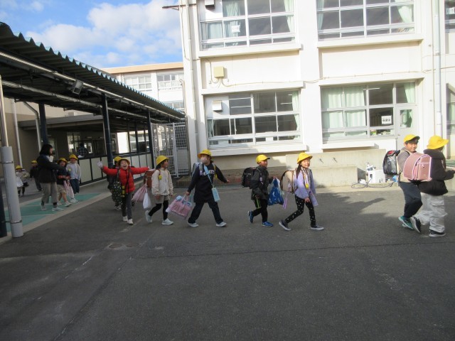 いよいよ明日、12月23日が終業式です。2学期が終わる前に持ち帰る荷物がたくさんありますね。昨日は、お道具箱、今日はピアニカ・・・と計画的に持って帰っています。最近の1年生、2年生の下校の一コマです。