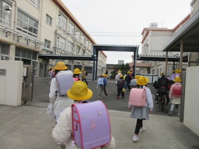 1月8日(木)正門からの登校の様子です。時折小雨がふる朝となりました。寒さに負けず元気なあいさつをしてくれましたね。この後天気が回復するといいですね。