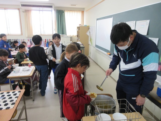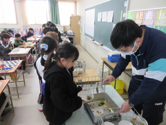 給食のおかわり行列やおかわりじゃんけんが、1年生の教室と2年生の教室で見られました。きっとどのクラスでもおかわりの行列ができていたことでしょう。