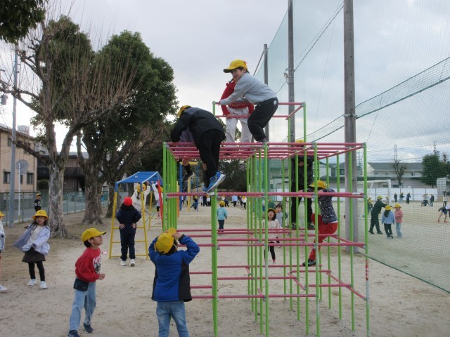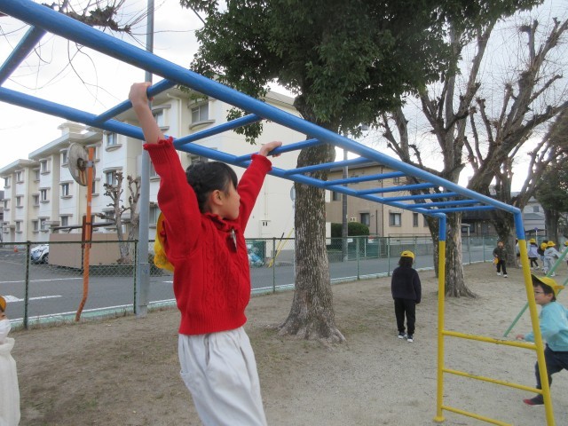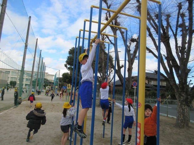 みんなで外で遊ぶのは楽しいですね。寒さに負けず、今週も元気いっぱいですね。