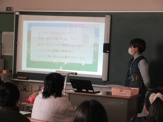 3学期が始まり、各学年が身体測定をしています。6年生は身体測定の後の保健指導で「がん」について学んでいます。正しい知識を身に着け、健康で長生きができるように、生活をふりかえり学びを生かしていきましょう。