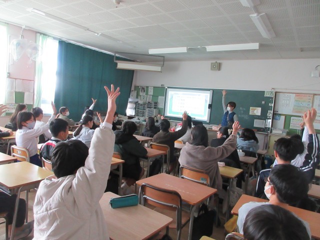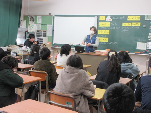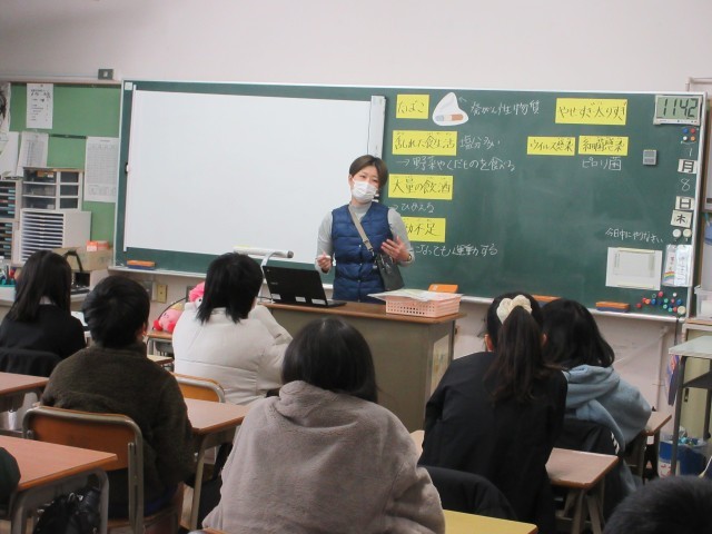 引き続き、6年生の身体測定後の保健指導の様子です。