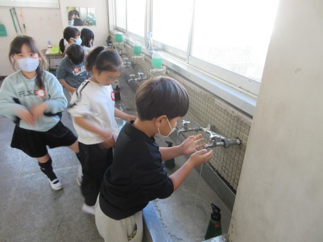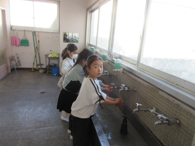 手洗いの一コマです。最近寒いですが、手洗いをしっかり丁寧におこなっています。今回紹介しているのは、1年生の手洗い場です。小野っ子のみなさん、ぜひこれからも丁寧な手洗いを続けましょう。