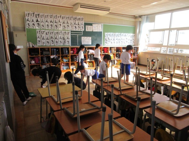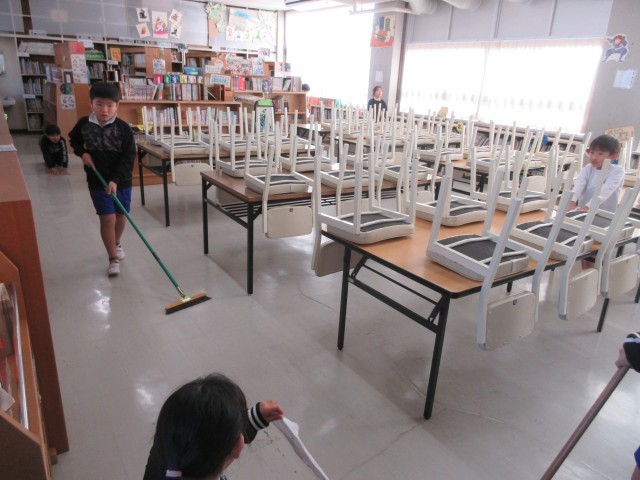 北館は3年生と5年生が担当しています。学校の隅々までピカピカになるように丁寧にそうじをしています。みんなが使うところをきれいにしてくれてありがとうございます。