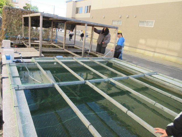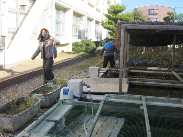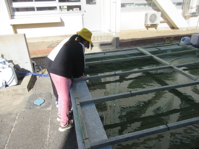 みんなの憩いの場、観察池のお世話を飼育委員の皆さんがしています。放課になると、池の掃除をしてくれます。いつもきれいにしてくれてありがとうございます。