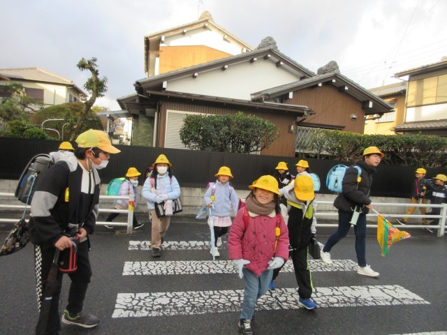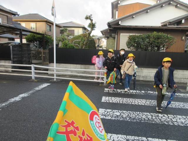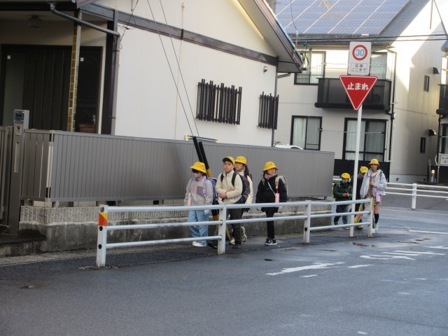 1月14日(水)正門からの登校の様子です。雨上がりの朝となりました。朝の時間はアスファルトも雨でぬれていました。雨をふきとばすような笑顔のあいさつをありがとう。この後天気が良くなりそうです。