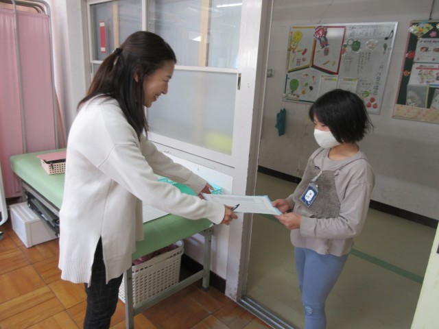 1月14日(水)にこきらチエックの日ですね。朝から保健室には各教室から係や当番さんが結果を報告に行っていました。3学期になって新しい係や当番さんに交代している人が多いと思います。「前の日に教室で呼びかけようかな」「パーフェクトでうれしかった」「あと少しだからがんばりたい」と話をしてくれました。小野っ子のみなさん、「ハンカチ、ティッシュ、つめ」について自分とみんなの健康と安全のためにお互いに気を付けていきましょう。
