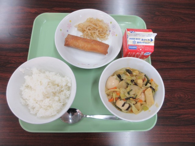 1月16日(金)今日の給食一言話は、きくらげいり中華海鮮旨煮の中に使われている「きくらげ」についてです。きくらげは、きのこの仲間で、コリコリとした食感が特徴です。あたたかいところが好きなのでビニールハウスの中で育てられています。今日のきくらげは、春日井市花長町でつくられたきくらげを入れました。こりこりした食感を楽しんでくださいね。一緒に入っているうずら卵もよくかんで食べましょう。