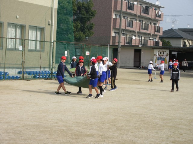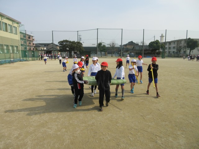 体育の授業の一コマです。3年生のみんなは、協力して走り高跳びの準備をしていました。大きなマット、支柱など用意するものがたくさんありますが、力を合わせて素早く準備しています。お陰でたくさん走り高跳びの練習ができますね。