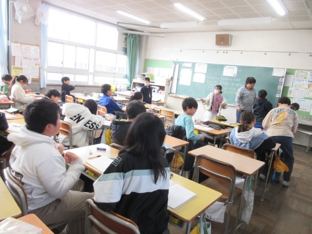 5年生の授業の様子です。算数では先生問題に挑戦しています。いろいろなパターンのやり方を学んでいます。だんだん自信がつくといいですね。