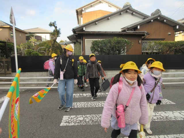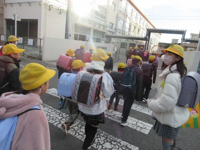 1月29日(木)正門からの登校の様子です。班長さんはいつも後ろのみんなの様子に気を配りながら班の先頭を歩いています。大勢の班長さんが後ろを振りかえる様子をみました。いつもありがとうございます。