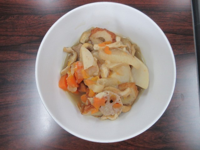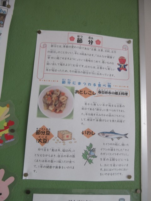 2月3日(火)今日の給食一言話は「おとしこし」です。昔は節分の次の日の立春に、新しい年をむかえるとされていました。この1年の節目である節分の日に、食べられてきました。年を越す大晦日のご馳走として、根菜や油揚げなどを煮た料理です。