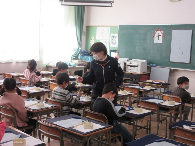 書の時間 特別講師の吉岡先生と学んでいます 1年生 1
