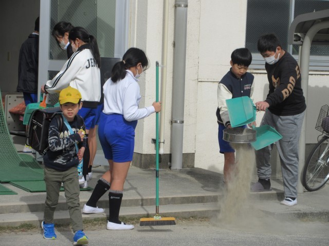 本館昇降口そうじ 6年生