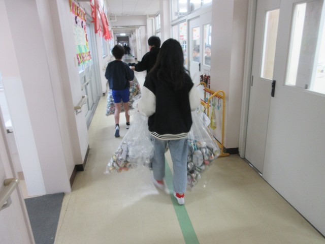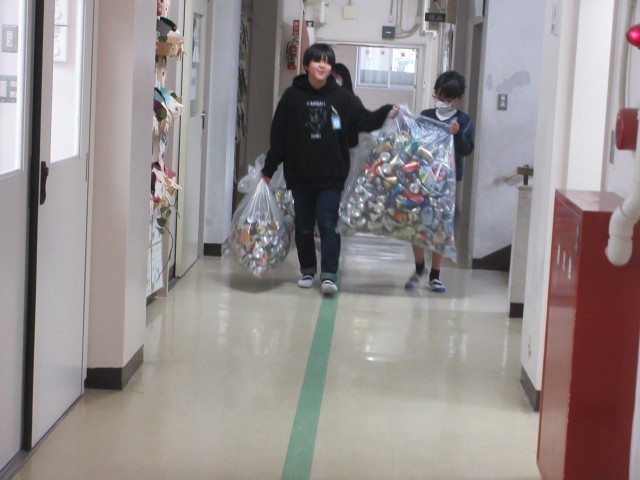 2月6日(金)ひとかかえ運動3日目です。今日が最終日アルミ缶を集める日です。環境委員のみなさんは朝から大きな袋をもって各教室からアルミ缶を集めてくれました。小野っ子のみなさん、3日間の牛乳パック、新聞紙、アルミ缶のひとかかえ運動に協力してくれてありがとうございました。環境委員のみなさん、毎日お仕事ありがとうございました。