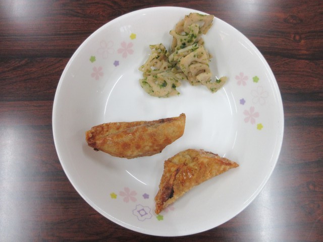 2月6日(金)今日の給食一言話は「レンコンのあおのりあえ」です。この献立は出川小学校の3年生が考えてくれた応募献立です。レンコンのシャキシャキ感を残すのがポイントです。食感を楽しみながら食べましたね。