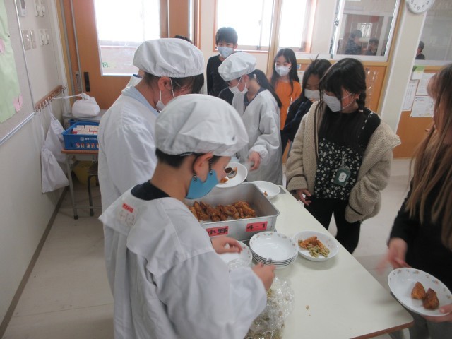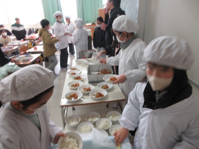 2月6日(金)給食の準備の様子です。4年生は係や当番はもちろんみんなで助け合って配膳や配る仕事を協力してできました。おかげで準備の時間が早く、食事をする時間がたっぷりとることができますね。つけ方も上手で最初から空っぽにできるクラスもありました。