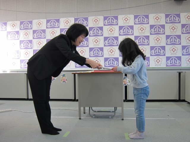 9日(月)、朝会がありました。最初に表彰伝達を行いました。