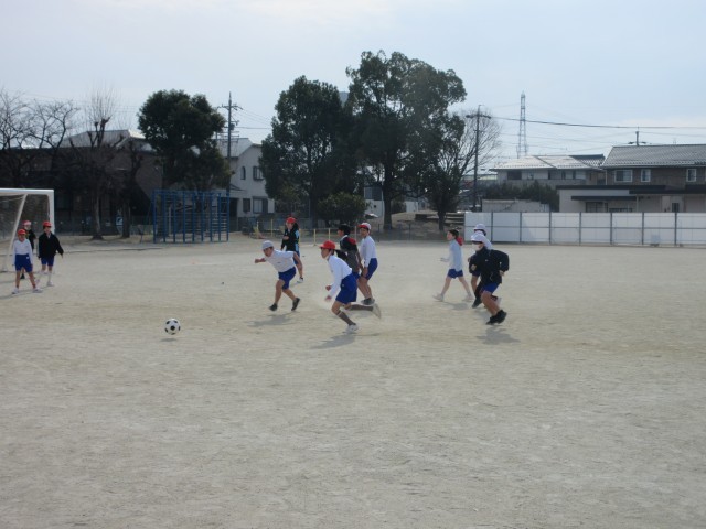 5年生の授業の様子です。体育ではサッカーに取り組んでいます。ルールを工夫して、みんなが積極的にボールを取りに行っています。
