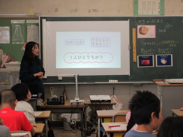 養護教諭による「いのちの学習」の授業を行いました。授業の前半では、一つの新しい命がどのようにして始まるのかを学びました。お父さんのもついのちのもとと、お母さんのもついのちのもとが合わさって、かけがえのない一人の人間が生まれてくる。その奇跡のようなつながりについて、どの子も真剣な表情で話を聞いていました。