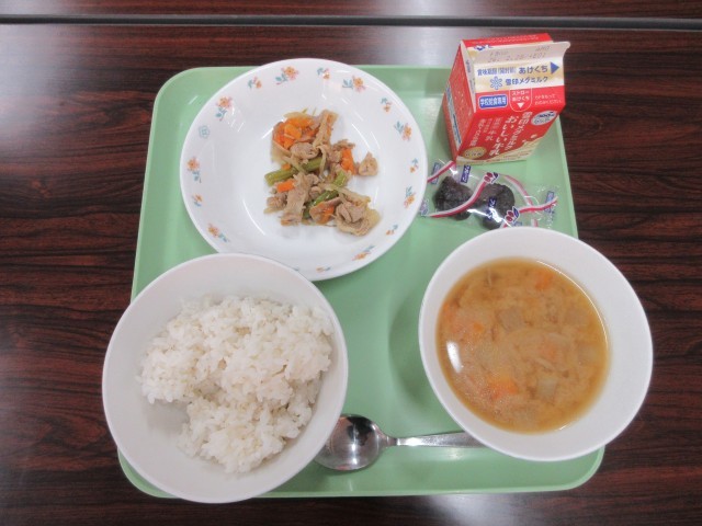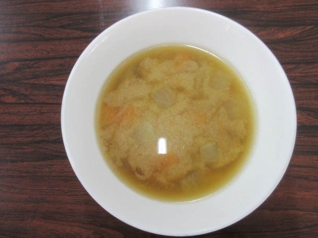 2月16日(月)今日の給食一言話は「けの汁」です。この汁は青森県津軽地方に伝わる代表的な郷土料理です。津軽の方言で「粥」を「け」と呼ぶことから、「かゆの汁」がなまって「けの汁」になったと言われています。米が貴重だった時代に刻んだ具材を米に見立てて食べたそうです。