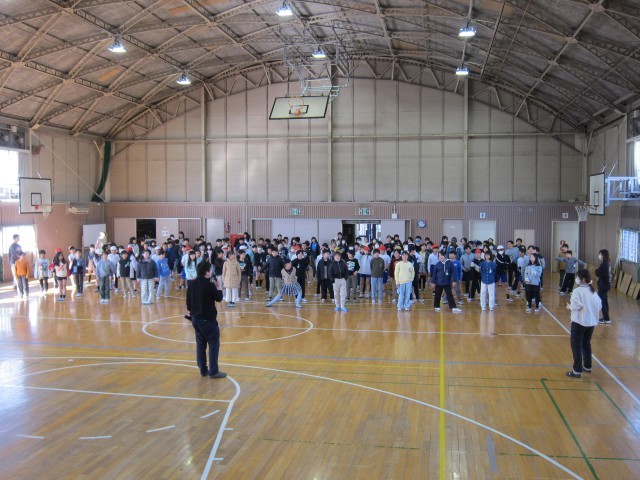 6時間目に、4年生は体育館で卒業生を送る会に向けて学年練習を行いました。これまで各クラスで確認をしたり代表児童だけが練習をしたりしていましたが、全体の動きを確認した後で、音楽に合わせて全員で実際に発表をする動きの練習を行いました。