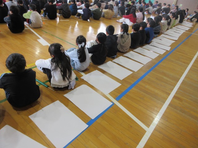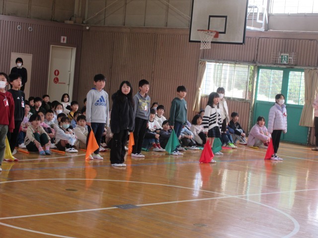 卒業生を送る会に向けて2年生が学年練習をしていました。今回は運動会で使ったカラフルな小旗を使っての練習です。呼びかけ、ダンスも揃って上手になっていますね。6年生に見てもらうのが今から楽しみです。