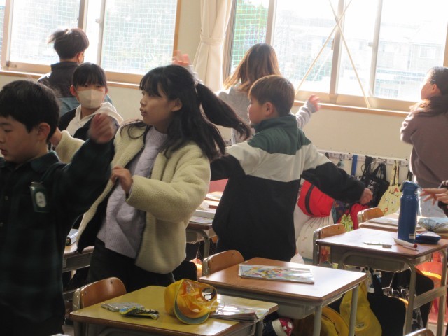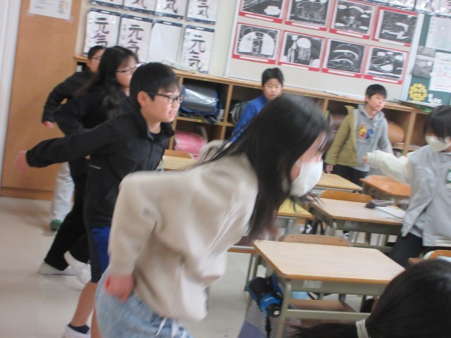 教室でも卒業生を送る会の練習をしている4年生のみなさんです。運動会の演技がよみがえってきました。