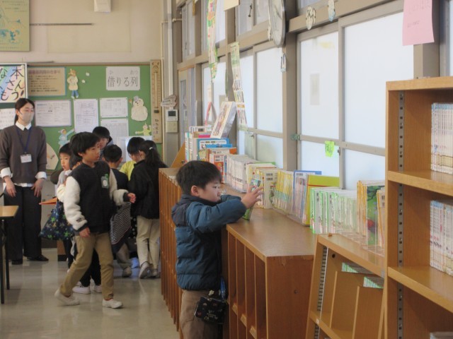 最近の図書室の一コマです。大勢の小野っ子のみなさんが、本借りたり返したりしていました。これからもたくさん本を読んでくださいね。