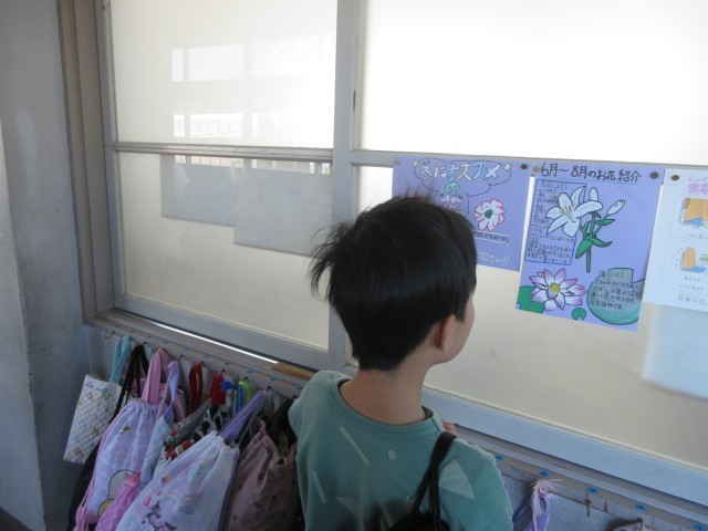 学校緑化委員のみなさんが書いてくれた植物ポスターを掲示してあります。ぜひ注目してくださいね。