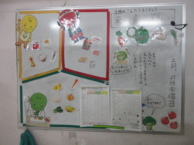 2月27日(金)今日の給食一言話は「高野豆腐の麻婆」です。高野豆腐は、今から800年前から食べられている食材です。冬の厳しい寒さの中、豆腐を外に出しっぱなしにして、凍らせてしまいました。それを溶かして食べてみた所、食感が面白く、美味しかったということで、食べられるようになったそうです。