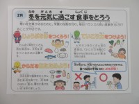 今日の給食は、麦ごはん、牛乳、スキー汁、いわしのしょうが煮、ココア牛乳のもとです。スキー汁は、日本にスキーが伝わった地とされる、新潟県上越市あたりの郷土料理です。その名の通りスキーをした時、体を温めるために作られたそうです。