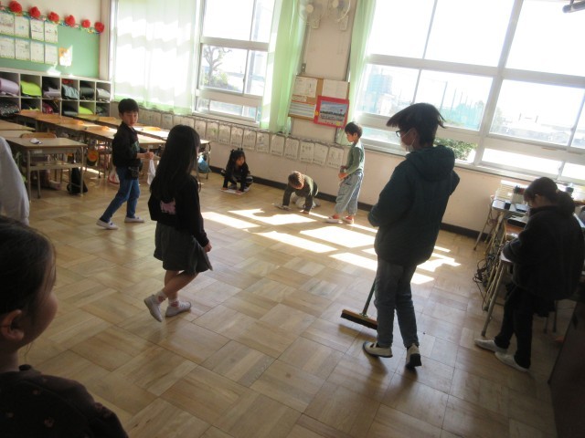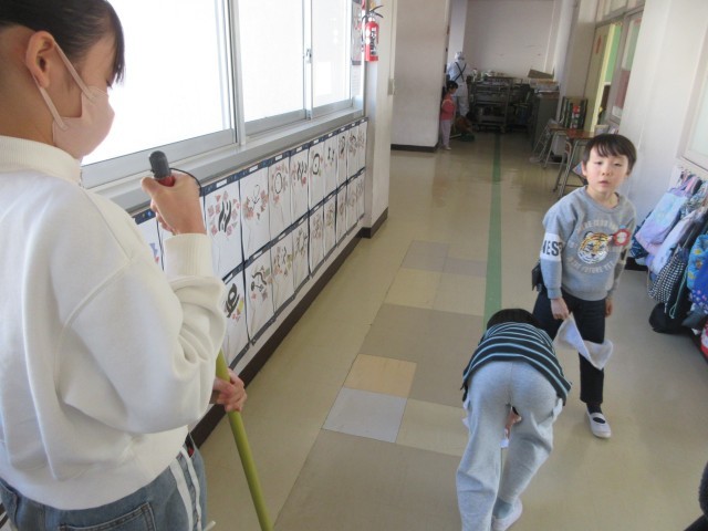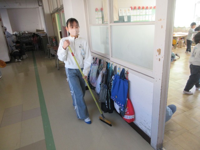 本館2階の1年生の教室や廊下は、6年生と一緒にそうじをしています。6年生と一緒にそうじができるのも後少しです。1年生のみなさん、6年生のお兄さん、お姉さんに「いつもありがとう」と言えるといいですね。