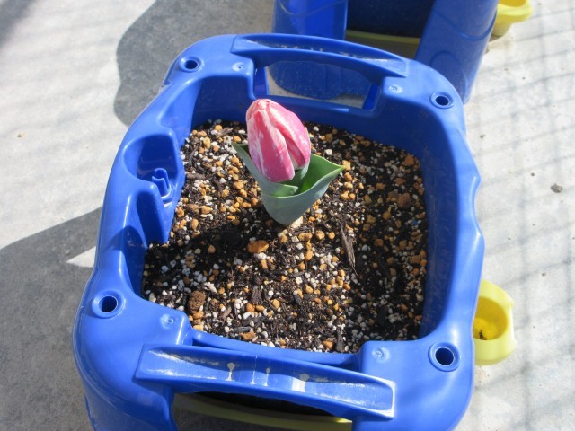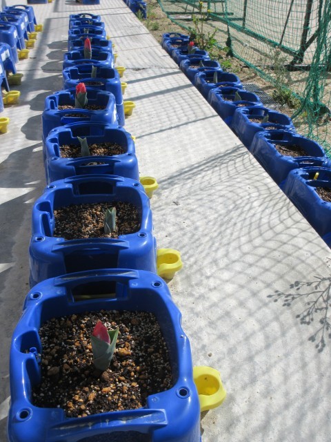 1年生が育てているチューリップがぐんぐん成長しています。今の所、赤系の色の成長が早いようです。他にはどんな色の花が咲くのかな?今から楽しみですね。
