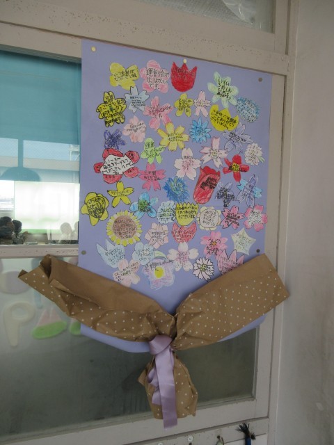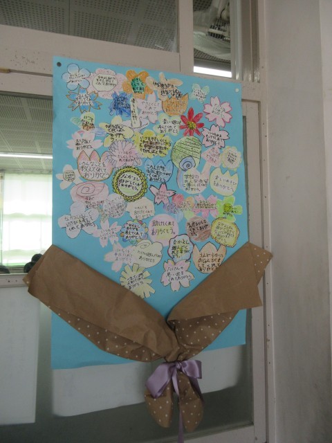 3年生からの6年生に向けての花束メッセージが教室や廊下に掲示されています。3年生からの6年生にむけてのあたたかい心のこもったメッセージをぜひ近くを通るときに見てください。