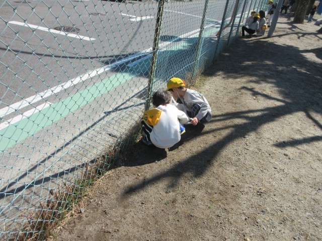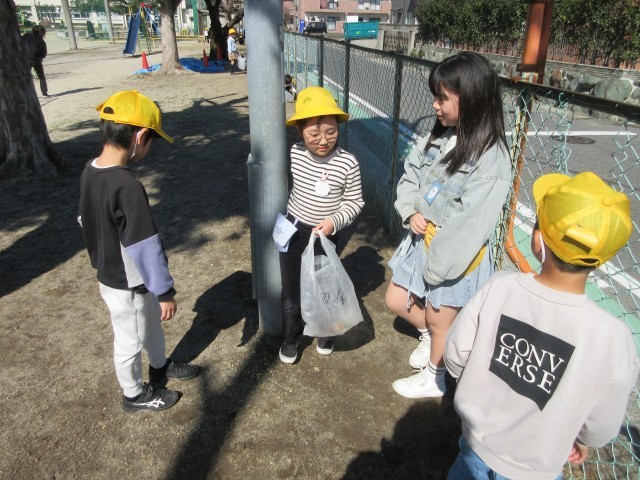 外そうじの一コマです。外そうじのみなさんは草や落ち葉、ごみなどを集めて委員会のお兄さんお姉さんがいるリアカーに持っていきます。みんなのお陰で学校がきれいになります。ありがとう。