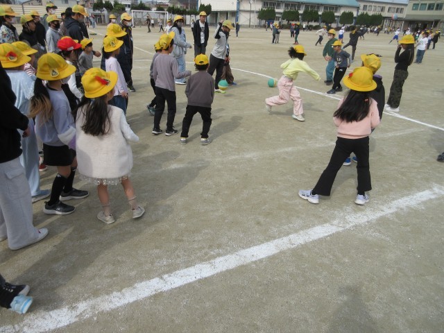 1年生と6年生が放課に一緒に遊んでいました。遊びの内容は転がしドッジボールです。投げるのではなく転がすドッジボール。1年生も一緒に楽しく遊ぶことができましたね。6年生と一緒に遊ぶことができるのもあと少しですね。みんなで仲良く遊びましょう。