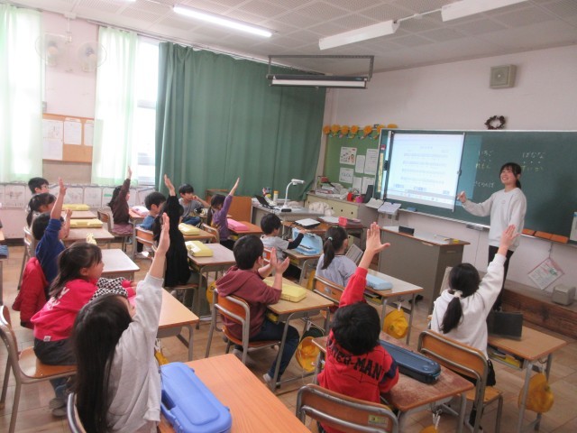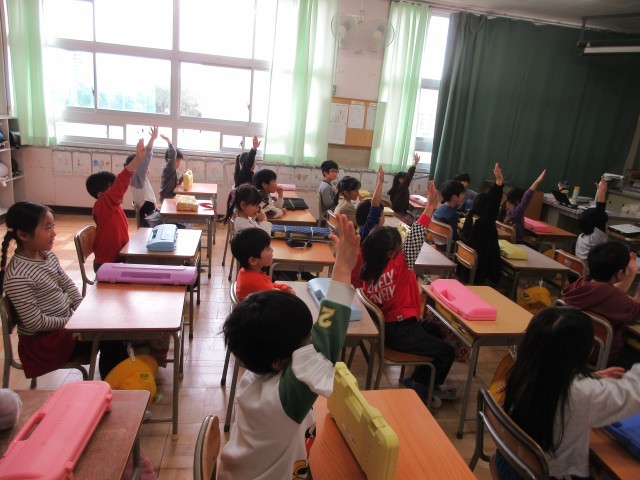 1年生の授業の様子です。音楽ではフルーツケーキをつくる歌を歌っていましたね。どんなフルーツを使うのか文字数を数えて、みんなが意見を出していましたね。多くのみんなが意見をいっていましたね。「いちご」「バナナ」「すいか」・・・さあ、どんなフルーツがケーキに使われるかな?楽しみながら歌っています。