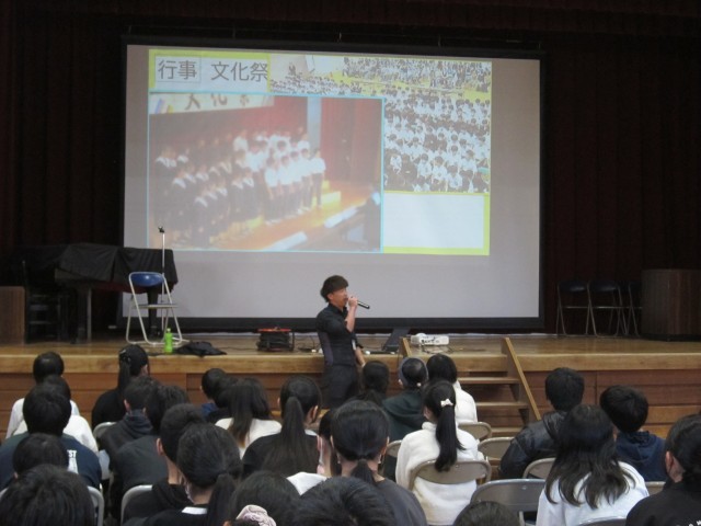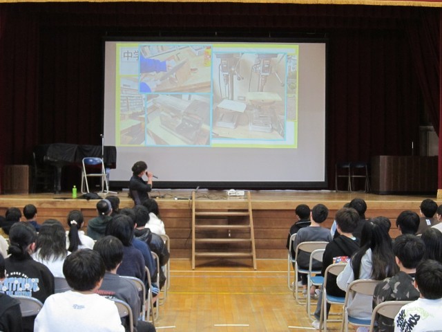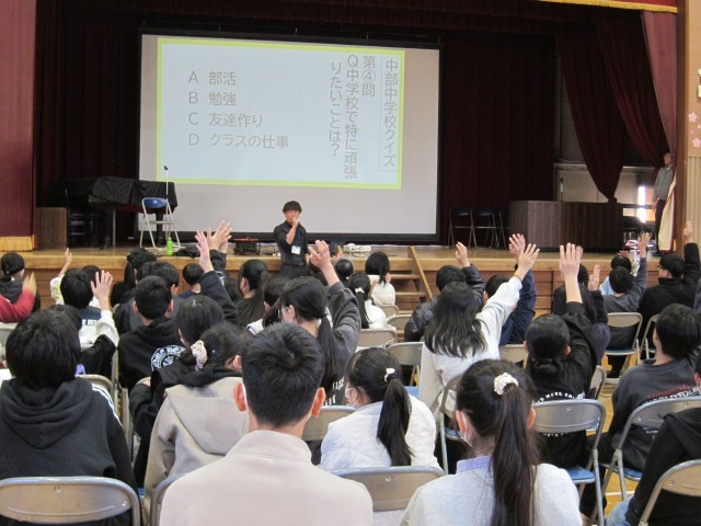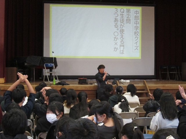 12日(木)5時間目に、中部中学校の先生にお越しいただき、中部中学校の説明会を行いました。中部中学校の校舎や行事、きまりなどの説明がありました。「図書室が広い」「廊下が長い」「運動場が広い」など、小学校との違いに驚きの声もあがっていました。