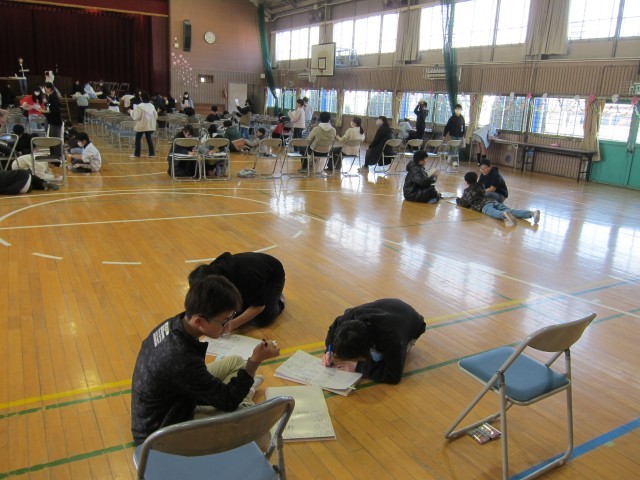 17日(火)6年生は体育館に集まり、卒業アルバムに寄せ書きを書きました。友達や担任の先生にメッセージを書いてもらい、また1つ小学校生活の大切な宝物ができました。