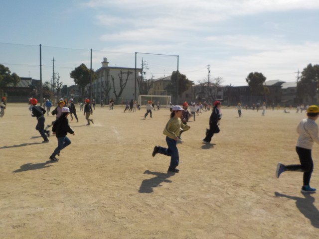 最初に行った『三色おに』では、クラスの枠を超えて助け合う姿がたくさん見られました。仲間に助けてもらった子からは「助けてもらえてうれしかった」「思いやりを感じた」という感想が聞かれ、誰かのために動く喜びや、支え合う心の大切さを改めて実感できたようです。続く『猛獣狩り』でも、他クラスの友達に「こっちにおいで!」と積極的に声をかけ合い、学年全体が温かい笑顔に包まれました。このレクを通して、今のクラスの絆を再確認するとともに、新しい学年への期待も大きく膨らんだひとときとなりました。残り少ない3年生の日々を、学年みんなで大切に過ごしていきたいと思います。